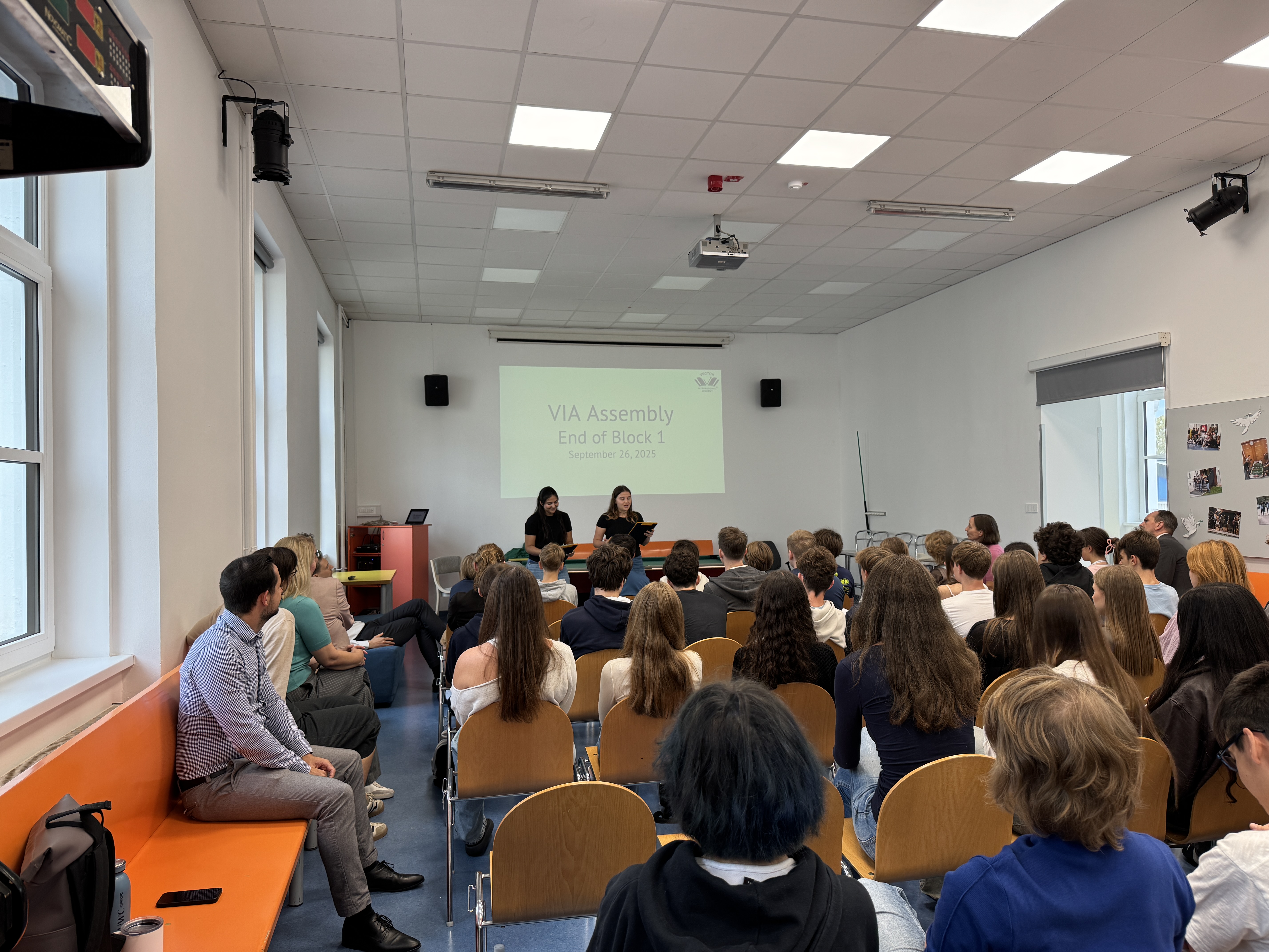 26. 9. 2025We made it! On this last day of the first five-week block, we ended with a wonderful whole-school assembly where each year group shared their Roses, Thorns, and Seeds. We are immensely proud of our students for standing up in front of the community and reflecting so thoughtfully. It is clear that the mission of these first weeks has been accomplished: we have established strong routines and built connections that will have a lasting impact on both learning and relationships.